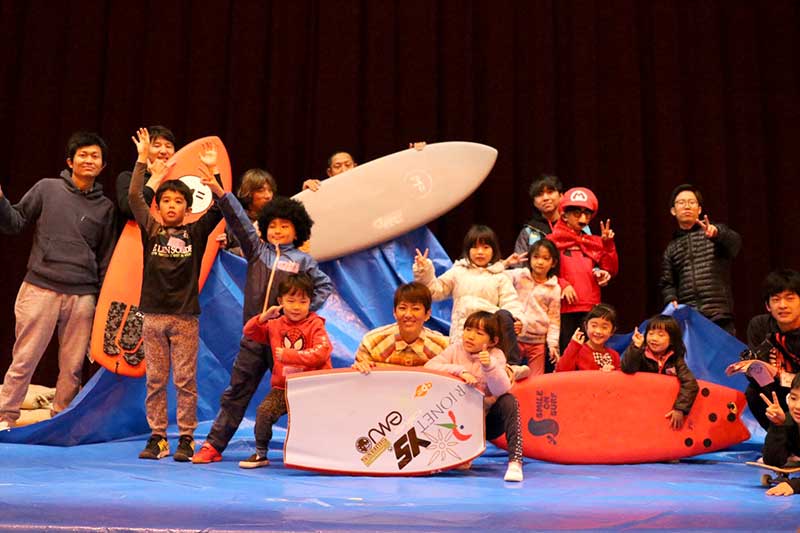サーフィンは海のスポーツですが、陸でもサーフィンを体験できるように色々と工夫しました。