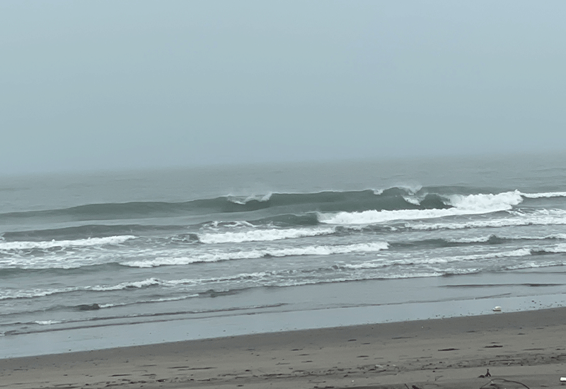 朝の波はまとまりに欠け、トロ速いワイドブレイクが中心でした。切れ目からはショルダーが続かず、多少横に滑れる程度で、選手たちはターンや技を繰り出すのに苦労しました。