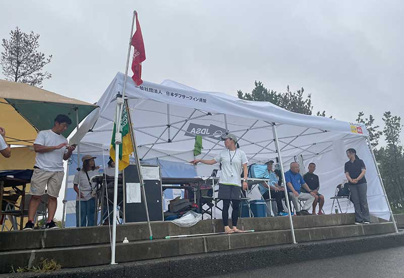 台風の接近により、天候と海の状況が不安定な状況下、サーフ大会の開催が危ぶまれました。当日の朝、地元の人々やジャッジたちの協議の結果、予定通り開催されることになりました。